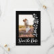 Meddela din speciella dag med stil och romantik med hjälp av detta svarta och vita foto Spara datumkortet. Den här eleganten är designad för enkel anpassning av onlinen och har ett ensidigt kort som ger ditt foto som är framtaget av delikat, handritat vitt skum ro mot svart bakgrund, en kombination av perfekt för modern enkelhet och tidlös charm. Anpassa den utan problem med namn, bröllop-datum och "inbjudan att följa"-text. Du behöver inte hämta eller designa software, bara klicka, anpassa och göra den unik på några minuter. Oavsett om du föredrar en professionellt tryckt version framför e-post eller en högupplöst digital fil för att sms eller skicka e-post till dina gäster, erbjuder det här kortet ett vackert och bekvämt sätt att glädjen hos det kommande bröllopen.