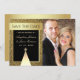Enkel, modern, lyxig inbjudan från glitter guld och svart julinbjudan från helgdag med foto.