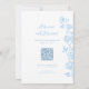 Ställ in en romantisk ton för speciella dag med detta vackert designade mjuka ljusblå foto Spara datumkortet med en dubbla och en lätt modern vrid. På framsidan visas ditt favoritfoto omgivet av delikat handritat ljusblått ro, parat med namn, bröllop datum och eleganten "uppmaning att följa". Den mjuka, drömmande paletten och blommigt inslag skapar ett tidlöst och romantiskt vibé som dina gäster kommer att hålla. Vänd kortet över för att visa en koordinerande utformning av blommigten på baksidan, där du kan lägga till information och webbplats om personligt bröllp. En unik QR-kod genereras automatiskt för dig, inga steg i extra krävs, vilket skapar det enkelt för gäster att omedelbart komma åt bröllop-platsen. Oavsett om det är OSA, hotellinfo eller din kärlek-artikel, så är det bara en snabbsökning bort. Den här mallen är designad för enkel, stressande anpassning utan att du behöver några designkunskaper. Klicka bara för att anpassa onlinen och skapa ett meningsfullt spara datumet i minuter. Välj mellan professionellt tryckta kort eller en högupplöst digital nedladdning som du kan skicka e-post eller text till gästerna, perfekt för det moderna par tittar för flexibilitet och bekvämlighet.