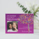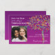 Den här moderna inbjudan från bröllop spara datum innehåller ditt foto med elegant-bokstäver på en lila i cassis. Konstruktionen har originalteckningar av en regnbåge träd som är gjord av hjärtformade löv och som innehåller två levande fåglar. Med regnbågen färg i träd fungerar inbjudan underbart för HBT TQ par, par som är intresserad av kristaller och chakras och är fortfarande lämplig för alla bröllop. Både fram och tillbaka är redo att anpassa och skicka. Impress dina gäster genom att fylla i ditt utseende med resten av Eleganten Lovebird Cassis Lila Bröllop Suite.