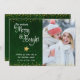 Photo Merry Bright Script Grönt Guld Glitter Star Julkort