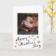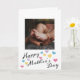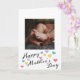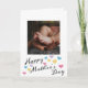 Lägg till ditt fotokort Mors dag. På framsidan av det här kortet i Mors dag har du ställe för att enkelt lägga till ett foto. Det finns en hälsning i Lycklig vid grund tillsammans med färgstarka hjärtan. Insidan visar ett sött meddelande för mamma som du lätt kan redigera. Baksidan har en ställe för dig till ställe, barnets namn tillsammans med mamma, mamma etc. En söt och unik keepy för Mors dag.