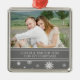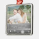 Par första jultomte dekoration anpassade med eget foto i elegant mörk charkol grått och vit festive snöflingor mönster. Gör en underbar keepy eller gåva till din make.