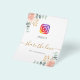 En vit chic bakgrund. Dekorerad med blommigtar, rosor och vattenfärgade eukalyptus löv i ro och guld. Med Instagram-ikonen och texten: Foto och kärlek. Anpassa och lägg till händelsenummer. Svarta och gyllene brev.