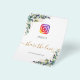 En vit chic bakgrund. Dekorerad med grönt vattenfärgade eukalyptus löv, sprickor, grön, faux guld löv. Med Instagram-ikonen och texten: Foto och kärlek. Anpassa och lägg till händelsenummer. Svarta och gyllene brev.