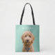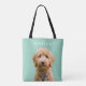 Unique cut out photo Personalized dog photograph and name template bag from Ricaso. Make it for yourself or as a special, unique personalized gift for someone. easy add your own photograph to this great all over print tote. - HOW TO : Upload your photo, then click on 'remove background' and move your photo into place to suit your requirements.