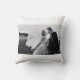 Anpassa dekorativ kudde med bröllopsdatumen, namn och ett foto av paret på baksidan. Det skulle vara en underbar gåva till nylingarna eller ett par som firar en årsdag. Kuddens framsida är ett vackert utandningsmönster för blommigten med namn och data på paret innanför ram. På baksidan av kudden kan du lägga till ett av fotona i bröllop.