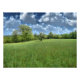 Ett landskap i rikens grönt, med en fält av högt gräs som ligger med träd under en djup fullt blå himmel av moln. Ett mystiskt dött träd står sig självt i fält mitten. Jag tog originalfotot på min farfars Julgran-gård utanför Blue Ridge Parkway nära Finare Gap, Virginia. Grått himlar ersattes med en datorgenererad dator och landskapet berikades med tonmappning och Orton-effekter.