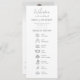 Photo Program Icon with Menu Wedding. A multi purpose design combining your program and timeline with icons and your menu on the other side, as well as a Qr code for guests to share their photos. Simply change the sample URL to that of the url of the website where your guests can upload their photos. An informal set typography in black for the main headings Menu and welcome, complementing the rest of the text which you can easily personalise. Replace the sample photo with your own favorite.