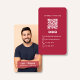 Elegant photo contact design featuring a rich burgundy layout and scannable QR code for easy connection. This customizable design includes space for a professional photo, name, social icons and contact details, making it ideal for entrepreneurs, consultants and small business owners. A refined, modern way to share your information and elevate your branding.