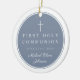 Personalized Photo Religious Cross Boy First Communion Ceramic Ornament. Part of the Modern Navy Blue Boy First Communion Suite with matching stationery and party accessories available.