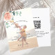 Dekorerad med en blommigt för guld och rosa, blomma från ro och grönt, vattenfärgad eukalyptus löv, spriter, grönsaks- och faux ro sprigs. Anpassa och lägg till information om foto, namn och bröllop. Vitt fotoöverlägg på framsidan. Tillbaka: Lägg till webbadressen för bröllop i QR-koden för mer information och/eller OSA.