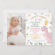 Photo Rosa Stomp Chomp Roar Dinosaur 1:a födelsedagsinbjudan Cute Photo dinosaur Temed födelsedagsfest inbjudan med en stor rosa dinosaur, en gult ballong, sol, löv och träd. Den här magen, chomp, roar låt oss party som en dinosauriefödelsedagsinbjudan kan användas för olika åldrar men är perfekt för en flickas dino på den första födelsedagen. Fotot visas på högernas framsida.