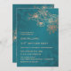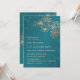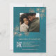 This elegant wedding invitation features rose gold line art flowers on a teal/ peacock green background. With a custom photo and a scannable qr code for your wedding website on the backside.