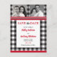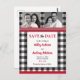 Rustic cottage red, black and white buffalo plaid-styrd foto-bröllop spara datum-vykort. Underbar för hipsters. Den här roligten är perfekt för ett land, en stuga eller ett utomhus bröllop.