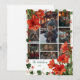 En djärv och festlig juldesign med pulserande röda amaryllis blommor, holly löv och vintergröna. Riken botaniska ram skapar ett varmt ryskt helgdag, perfekt för att skicka glatta säsong hälsning.