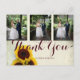 Foto Rustic Solros Blommigt Modern Elegant bröllop Tack vykort. Typografin är i ett modernt teckensnitt All text ändras lätt för att lägga till din egen information. Lägg till egna foton. Baksidan innehåller ett foto som är fäst så att ditt eget anpassningsbar-meddelande kan läggas till. Fotot visas också stilla. Den här anpassningsbarna är ett tack för att du har ett kort i ensam, men det är en del av en svit bröllop stationär från Just Bra Designer.