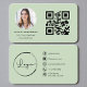 Promote your brand with this photo sage green QR code business card. The soft sage green color creates a calm, modern look while the photo layout allows you to showcase your brand or personal image. An integrated QR code makes it easy for clients to access websites, booking pages, or social media. Designed with clean spacing and contemporary styling, this card is ideal for professionals seeking a polished, print-ready business card with digital convenience.