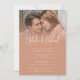 Skrivna eller utskrivbara digitala nedladdningar eller båda. Rustic Photo Script Terracotta Bröllop Rehearsal Dinner Bohemian inspirerade örhänta toner av elfenbenskrämtext på terracotta som satte stil för denna minimalistiska design som du lätt kan anpassa med bild av dig båda och ändra texten efter behov.