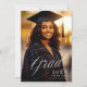 Inbjudan dina kära till dina studenten-evenemang med den här klassinbjudan som innehåller ett foto från anpassadet, ett finare-skript från silver, "Grad" och en ren vit minimalistisk baksida med inbjudan.