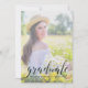 Inbjudan till studentfest av elegant med söt botaniskt löv på baksidan. <i>Fotografi https://pixabay.com/en/users/jill111-334088/?tab=about</i>