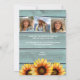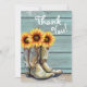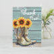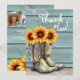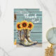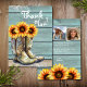 Foto Tack Rustic Land Western Solrosboots Cards har en vattenfärgad illustration av cowgirl-bots fylld med solblommor med texten "Tack" i modern manustypografi och personlig med ditt anpassningsbar-meddelande och tre foton på baksidan. Designad av Evco Studio www.zazzle.com/store/evcostudio