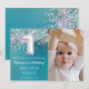 Photo Teal Silver Glitter 1:a födelsedag Party Inbjudningar