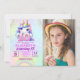 Personalized photo invite featuring a sweet unicorn illustration and pastel rainbow colors for her 10th birthday.