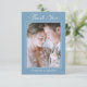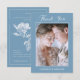 Photo Upload Dusty Blue Floral Wedding Calligraphy Tack Kort