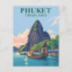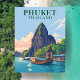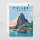 Fly till de fantastiska stränderna i Phuket, Thailand, med detta vintage-inspirerade vykort. Med långsvansbåtar, palmer och båt frammanar detta samlarvykort den tidlösa skönheten i Thailands tropiska läge