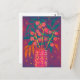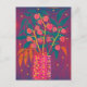 Vykort med fet blommigt-grafik, autumnal bouquet, physalis-bär, emerald grönt och orange löv i rosa vas på lilans bakgrund. Papper kollage bygger på en livsskiss och digitala manipulationer. © Julia Khoroshikh www.juliakhoroshikh.art #floralart #abstractfloral #boldfloral #collage #physalis #gooseberry #chineselanterns #collageart #contemporaryfloral #zazzle #zazzlemade #postkort #hälsningskort #postcross