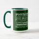 Physics Mugg. Med följande ord i baksidan - Fysik, acceleration, massa, partiklar, termodynamik, tyngd, hawking, big bang, svart hål, elektromagnetisk, maxwell, quantum mekanik, strängar, strålning, tesla, kraft, e=mc2, gas, atom, proton, kärnkraft, hertz, strålning, gamma , absolut 0, nanoteknik, bana, frekvens, vikt