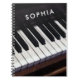 En bärbar dator med konstnärligt pianotema för student eller pianolärare. Så här anpassar du redigeringstexten för att lägga till namn.