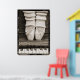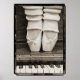 Ett vackert foto med sömntoner och stillastående livsfoto av balettskor en pointe vid en upprätt piano tangentbord omgiven av en grafisk polaroid-stil gräns. Den stora poster är 30 x 42 tum eller 76 1/4 x 106 1/2 cm