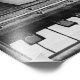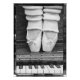 Ett vackert svart och vitt stilllivefotografi av balettskor en pointe vid ett upphöjt piano tangentbord omgivet av en grafisk polaroid-stil gräns. Det medelstora fototrycket är 11 x 15 1/2 tum eller 28 x 39 cm.