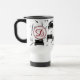 Modern, snyggt piano tangentbord, klarinets och musik noter i svartvitt och personlig med ett redigerbart elegant-skript monogram i ett prov färg rött på resemuggens framsida och baksida. Perfekt för musikern som främst spelar piano och klarinett. Kontakta formgivaren FÖRE ORDERING via Zazzle-Chattan eller makeitaboutyoustore@gmail.com om du behöver hjälp med att anpassa eller överföra formgivningen.