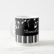Modern, snyggt mugg med piano tangentbord och musik noter i svart och vit personlig med namn i ett redigerbart handskrivet typsnitt stil. Perfekt för musiklärare, musiker och professioneller. ÄNDRINGAR: Du kan ändra den svarta bakgrunden färg eller textteckensnittet stil, färg, storlekt och placerat genom att klicka på CUSTOMIZE YTTERLIGARE om du vill se anpassningsbarna eller helt enkelt ta bort exemplet namn om du vill lämna området tomt. Kontakta designern innan du beställer via Zazzle-Chattan eller makeitaboutyoustore@gmail.com om du vill att designen ska ändras eller på en annan produkt.