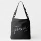 Stor Crossbody Tote Bag-Personlig för pianomusik med ditt namn tryckt på den med ett modernt och elegant handskrivet calligraphy-skript i svartvitt. Färg kan bytas ut för att skapar dem perfekt för många barn att lagra sin musik och piano bokar hemma i lakan och föra dem till lektioner.