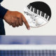 Klassiskt svart och vitt tangentbord med böjt fläkt. Tillagt musik noter tillför ett festligt utseende.