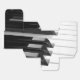 En närhet till nycklar i ett piano tangentbord, nycklar en slät och glansig vit och svart, och piano i sig själv i en glansig svart lacker. Perfektens gåva eller leta efter en musiker, kompositör eller låtskrivare.