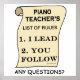 Piano Teacher's List of Regler: Jag leder, du följer! Några frågor? Kan något vara enklare?