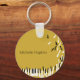 Nyckelring för flygel för barn, pianist eller lärare. Söt rund personlig nyckelring med elegant namnmonogram. Personligt tillbehör för män, kvinnor och barn. Tangentbord med klassisk instrumentdesign för pianolärare, musiklektioner etc. Roligt svart och vitt personligt partytillbehör.