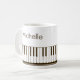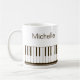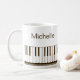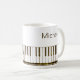 Modern, stilren mugg med pianoklaviatur och notskrift i svart och vitt, personlig med ditt namn i handskriven stil. Perfekt för musiklärare, musiker och musikproffs. ÄNDRINGAR: Du kan ändra den vita bakgrundsfärgen eller teckensnittsstil, färg, storlek och placering genom att klicka på REDIGERA för en anpassad look eller helt enkelt ta bort exempelnamnet för att lämna det området tomt. ALTERNATIV: Exemplet visas i storleken 11 oz mugg; andra storlekar och dryckesvaror finns tillgängliga på beställningssidan