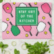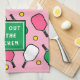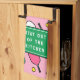 Kreativt pickleball-gåvaidé med varmt rosa och coolt grönt paddelmönster och citat för pickleball-spelare att placera i köket eller ta med till banen.