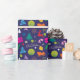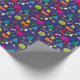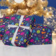FÀrgfull julklapp papper med fÀrgstarka julikoner pÄ marin blÄ bakgrund. Underbar idé om att klÀ av dig presenter för din pickleball-vÀn eller familjemedlem