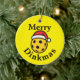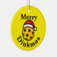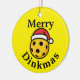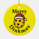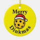Julprydnadsföremål i pickleball har en lustig pickle boll med tomhatt och en pun som säger, merry dinkmas!