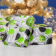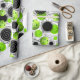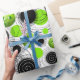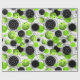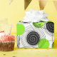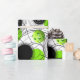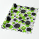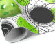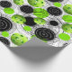 En söt design som skildrar en mönster av nybörjarkulor i grönten omgivna av svarta och vita spiralcirklar.