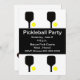 Pickleball paddle & boll-inbjudan till en roligt party på och utanför domstolen.