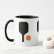 Pickleball paddle och orange pickleball på kaffe mugg. Roligt till party på och utanför domstolen!