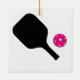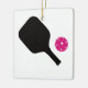 Pickleball paddle & pink ball on a square ceramic ornament, Perfect for a pickleball players Christmas tree.